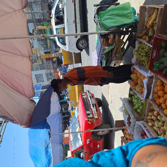 - "A man stands beside a fruit stand under an umbrella, offering fruits" by FM-b0Aw43, licensed under CC BY 4.0