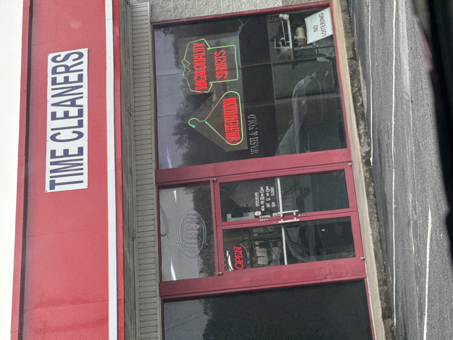 - "An exterior view depicts "TIME CLEANERS," a dry cleaning establishment located in Lawrenceville, United States" by FM-AodXs2, licensed under CC BY 4.0