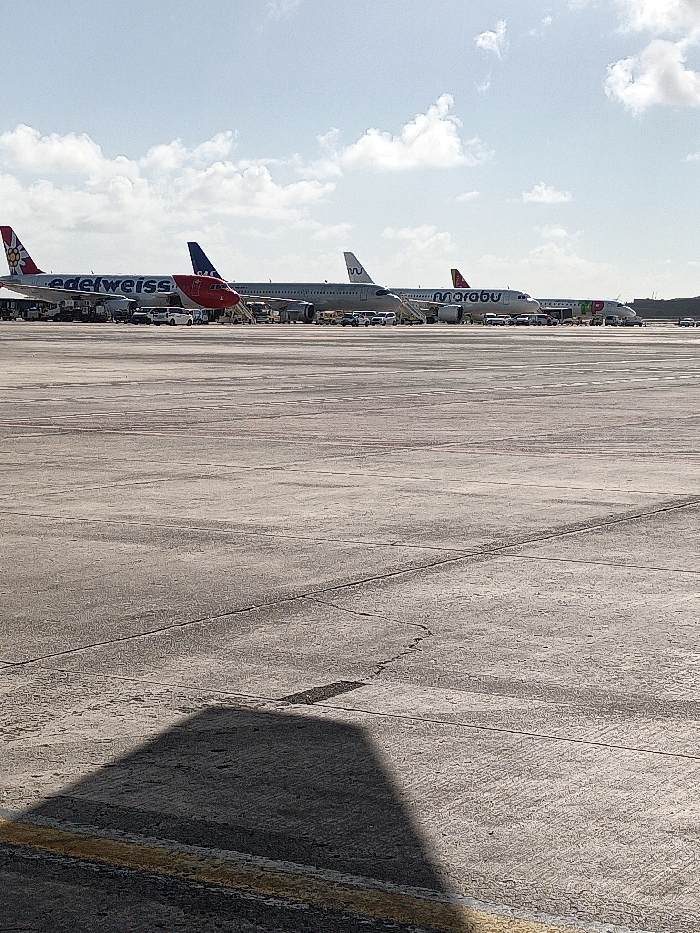 - "The image displays an airport apron scene at Gran Canaria Airport (GCLP) in Las Palmas de Gran Canaria, Spain, under a sky with scattered white cumulus clouds" by FM-63vGE2, licensed under CC BY 4.0