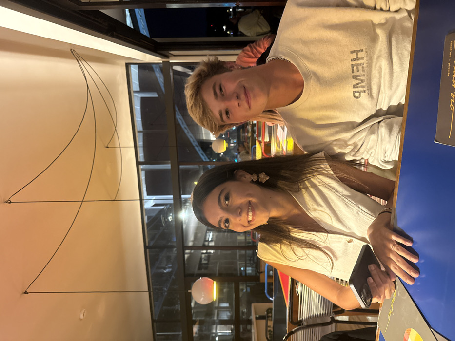 - "The image displays two individuals, a female and a male, seated at a blue-topped table indoors during what appears to be nighttime" by FM-FttXz1, licensed under CC BY 4.0