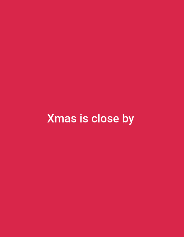 A deep red background fills the frame. Centered, the text "Xmas is close by" is written in a simple, sans-serif, white font. The text is clear and legible against the bold red backdrop. The overall composition is minimal, focusing solely on the message.