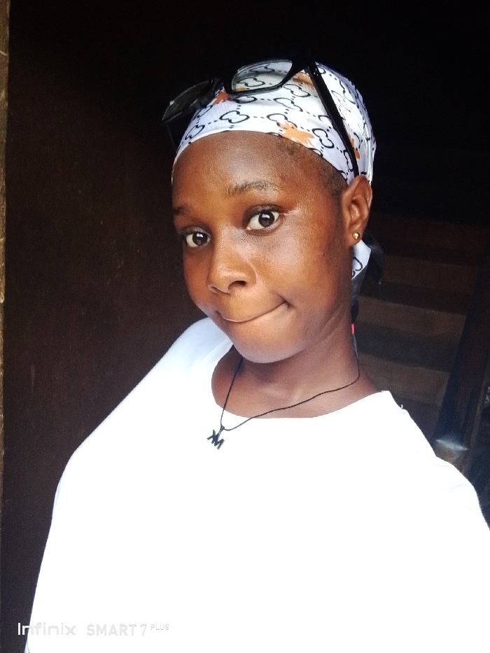 A young adult female is depicted in a close-up portrait, located in the city of Fegge, Nigeria