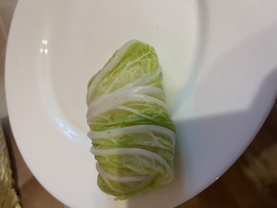 - "A single cooked cabbage roll is presented on a white, round ceramic plate" by FM-ocCcw2, licensed under CC BY 4.0