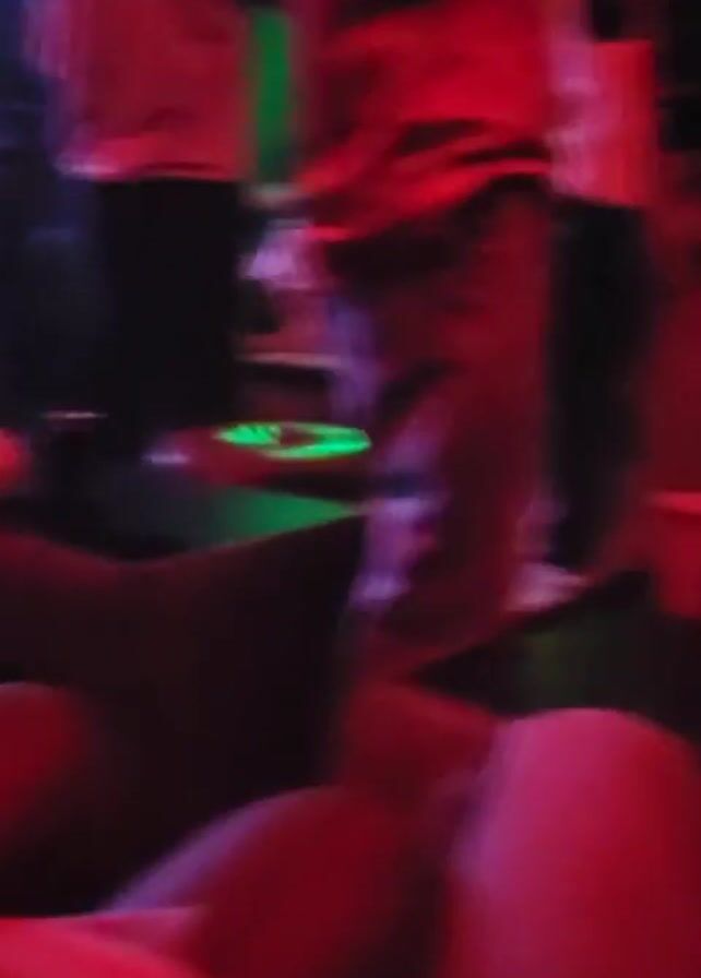 The video is shot from a low perspective, showing a dimly lit, possibly indoor, social gathering