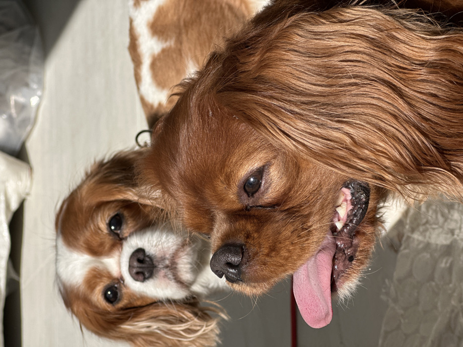 - "The image, captured in Krumovo, Bulgaria, depicts two Cavalier King Charles Spaniels positioned on a light-colored, uniform surface" by FM-5QrBp1, licensed under CC BY 4.0