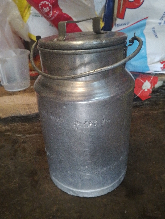 - "The scene, located in Kinale ward, Kenya, presents an aluminum milk can positioned centrally on a dark, possibly concrete floor" by FM-jVkz32, licensed under CC BY 4.0