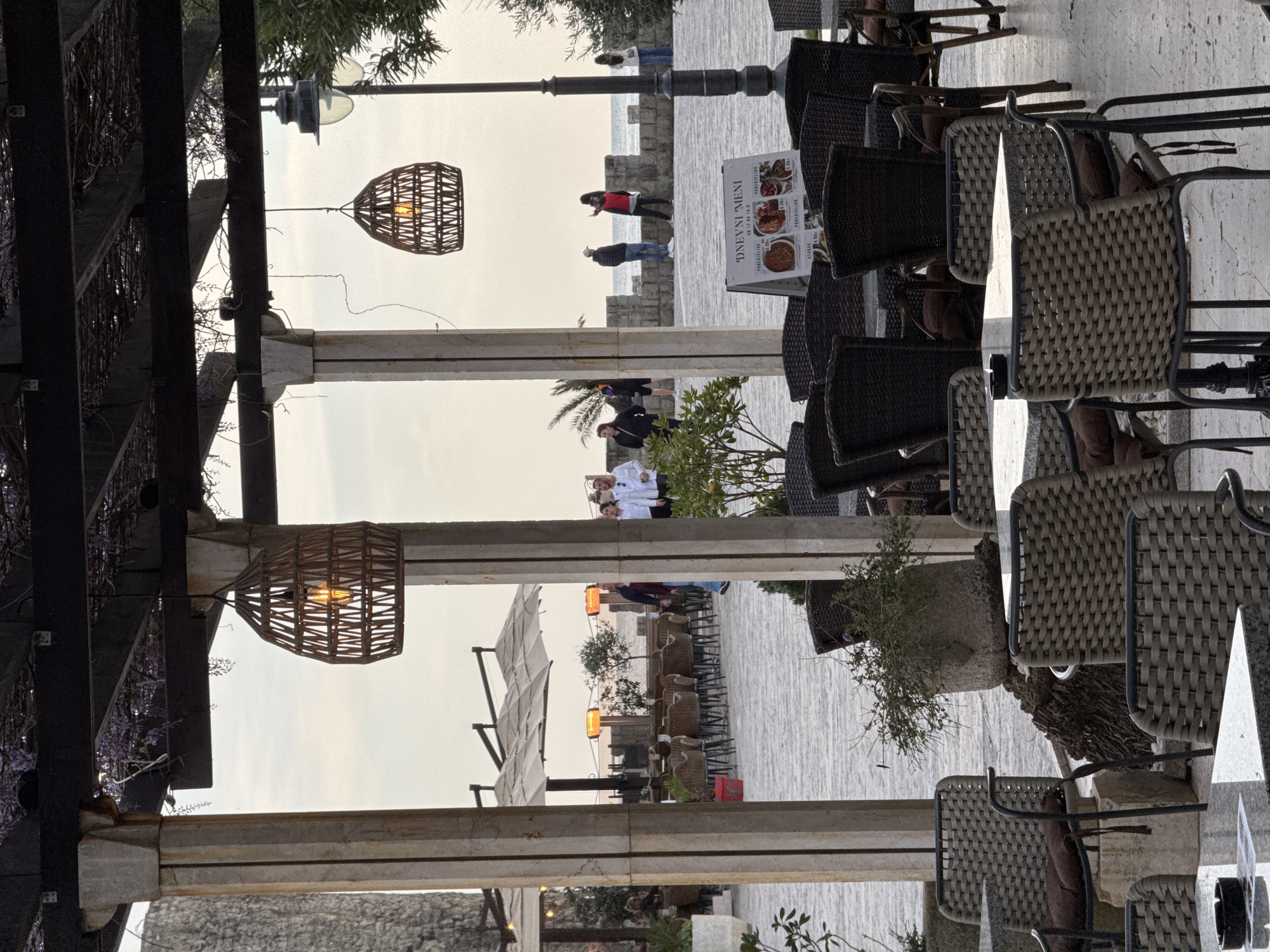 - "The image displays an outdoor cafe and adjacent promenade in Budva, Montenegro, situated along the coastline, likely near the Old Town or marina" by FM-jWunq1, licensed under CC BY 4.0