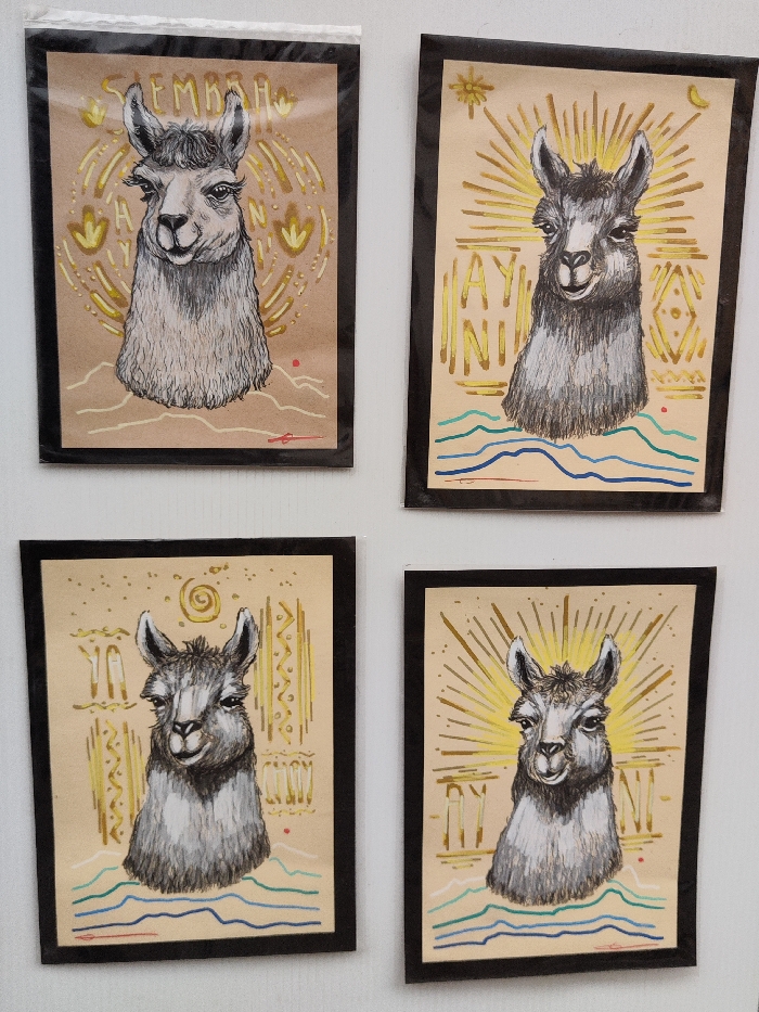 - "Four framed illustrations feature llama portraits in a whimsical style" by FM-20kwN2, licensed under CC BY 4.0