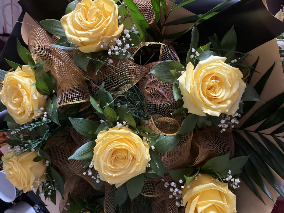 - "The image displays a bouquet consisting primarily of at least seven light yellow roses" by FM-SRUps1, licensed under CC BY 4.0