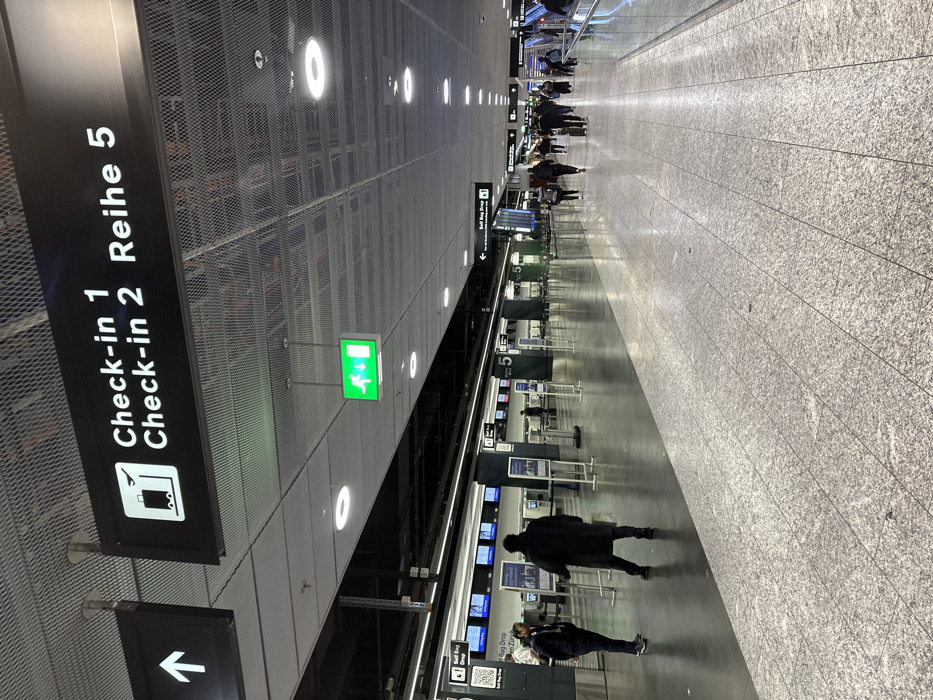 - "An airport scene displays check-in counters numbered 1, 2, and Reihe 5, marked by overhead signage" by FM-n6yWE2, licensed under CC BY 4.0
