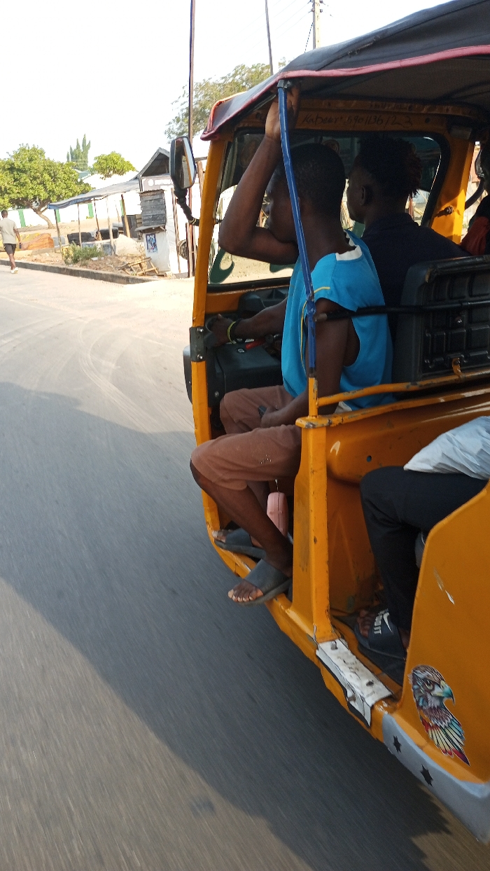 - "A yellow motorized tricycle is captured in motion on an asphalt road in Otokiti, Nigeria, under bright daylight" by FM-1Z6Vj1, licensed under CC BY 4.0