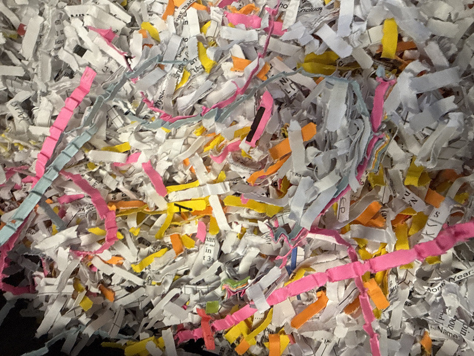 - "The image presents a dense, static pile of shredded paper, contained within an unidentifiable receptacle that fills the frame" by FM-AodXs2, licensed under CC BY 4.0
