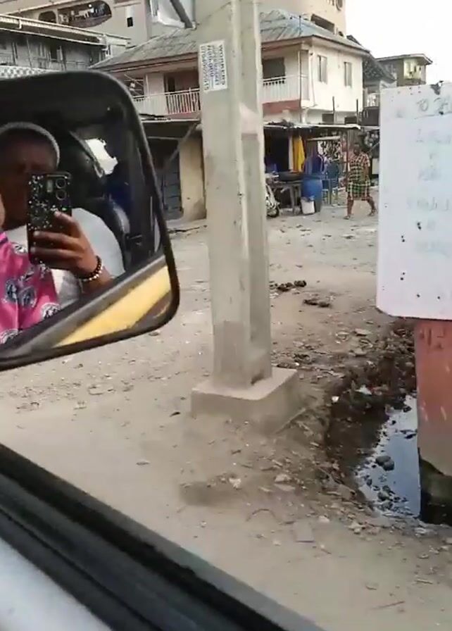 The video, filmed from inside a vehicle, shows a street scene in Nigeria
