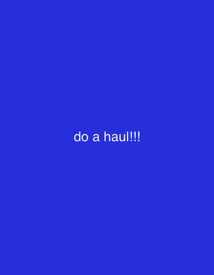 A royal blue background dominates the image. Centered horizontally and vertically, the text "do a haul!!!" is written in a simple, sans-serif font. The text is white. The background is a solid color with no gradients or textures.