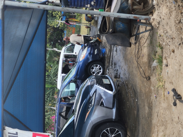This image depicts an outdoor car wash or vehicle service area in Igando Oloja, Nigeria