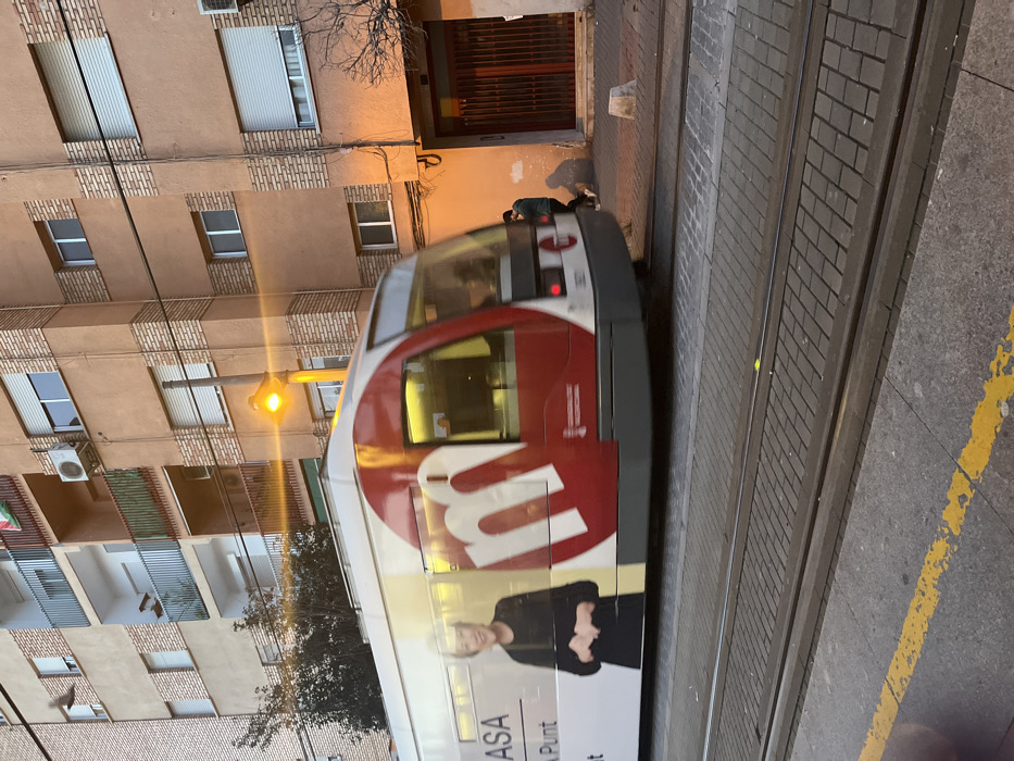 - "A modern train car, adorned with a large red "M" logo and an advertisement featuring a woman in black, moves along a track" by FM-pNWBR2, licensed under CC BY 4.0
