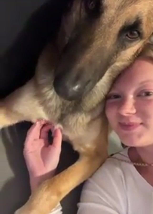 - "A young woman is seen lying down and taking a selfie with her tan dog" by FM-v1KIi2, licensed under CC BY 4.0
