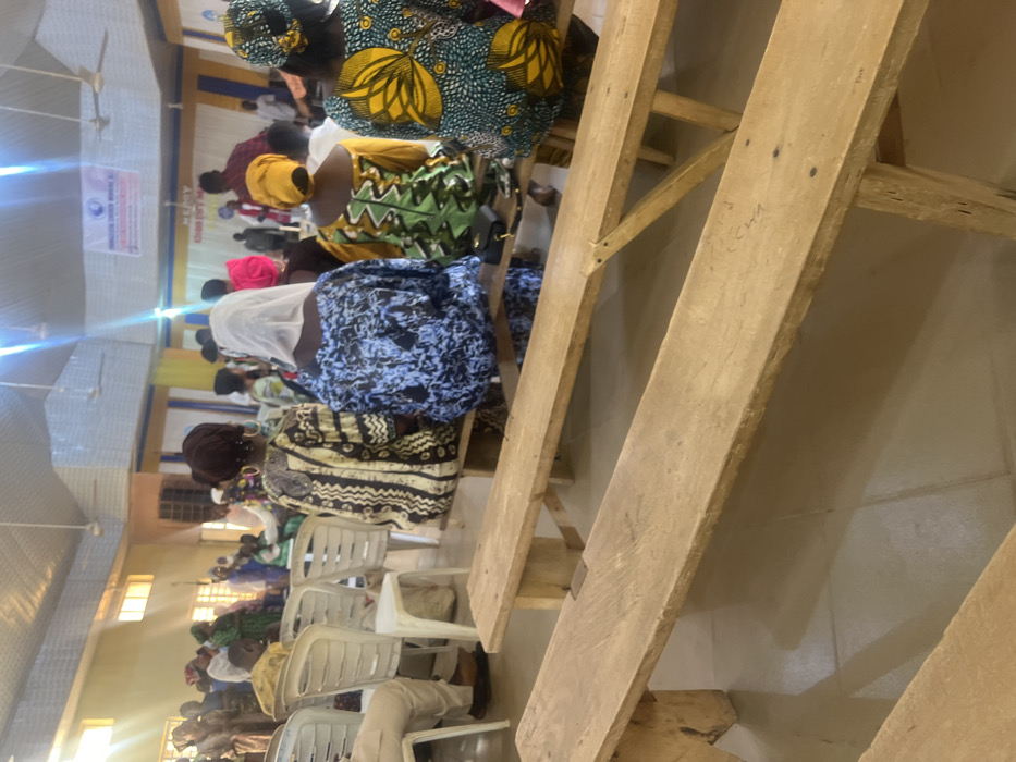 This image depicts an indoor gathering inside the Redeemed Christian Church of God in Birnin Kebbi, Nigeria