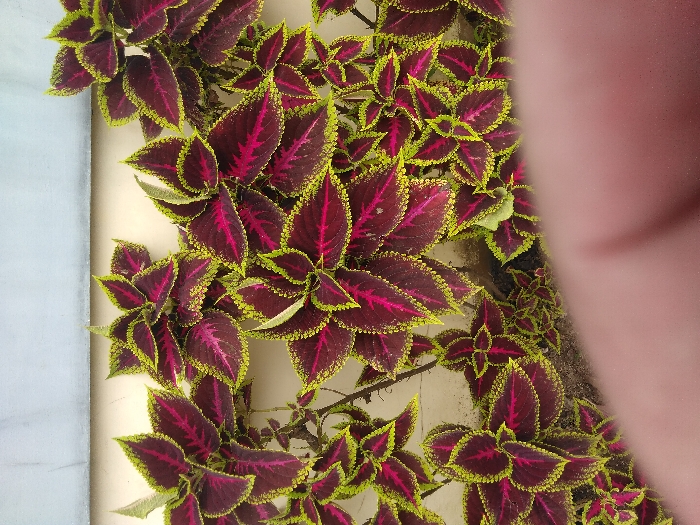 - "A forensic close-up image, captured in Ciherang, Indonesia, depicts a dense arrangement of variegated Coleus plants (Plectranthus scutellarioides) against a two-tone wall" by FM-1kJrA2, licensed under CC BY 4.0
