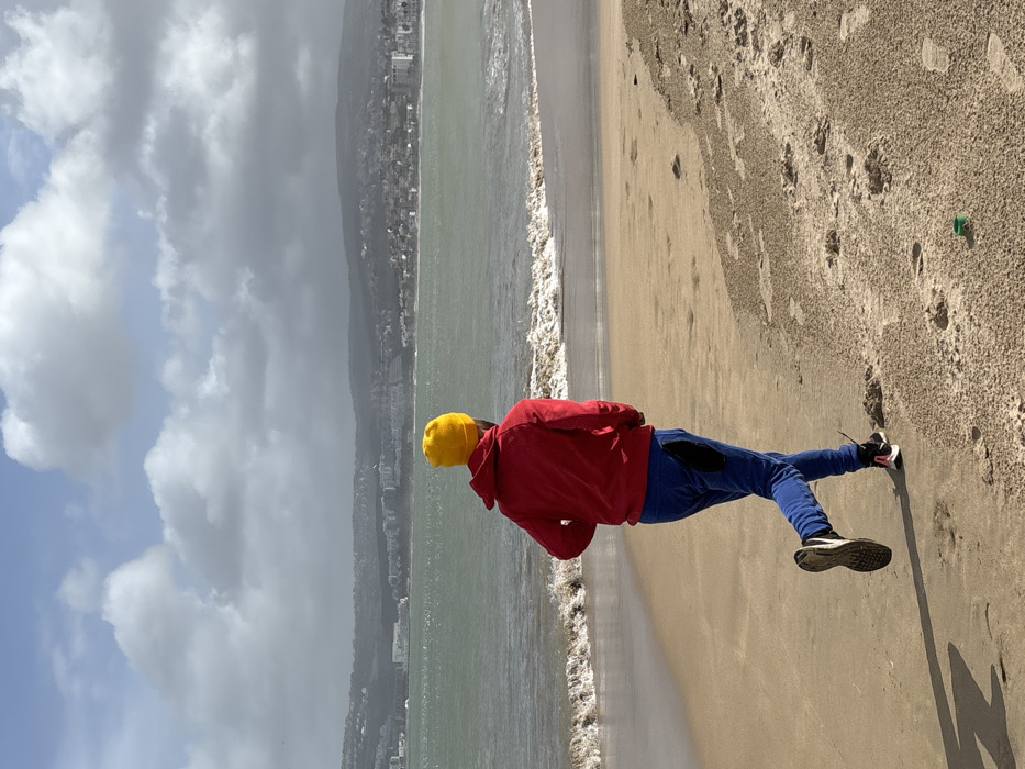 - "A lone individual is depicted running along a sandy beach in Tangier, Morocco, with the city's coastline and hills visible across the water" by FM-YEyMx1, licensed under CC BY 4.0