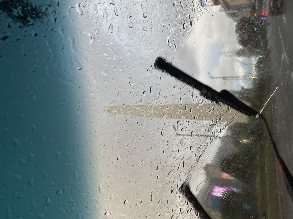- "The image presents an urban scene viewed from the interior of a vehicle, looking through a windshield heavily streaked with rainwater" by FM-PEACg1, licensed under CC BY 4.0