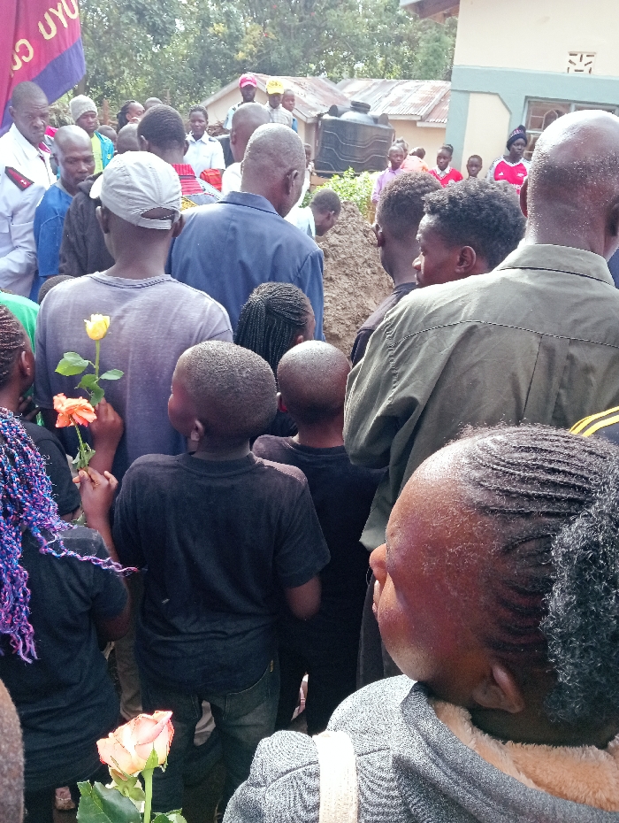 The image displays a dense outdoor gathering of approximately 20-30 individuals in Lumakanda ward, Kenya