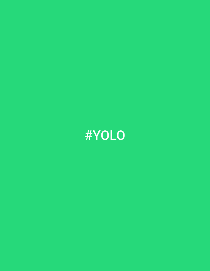 The image displays a solid, uniform field of vibrant green color. Centered within this green field is the white text "#YOLO" rendered in an uppercase, sans-serif font. No other subjects, objects, people, or discernible actions are present. The environment is abstract and two-dimensional. Location is undetermined, in the city of Unknown, Unknown.