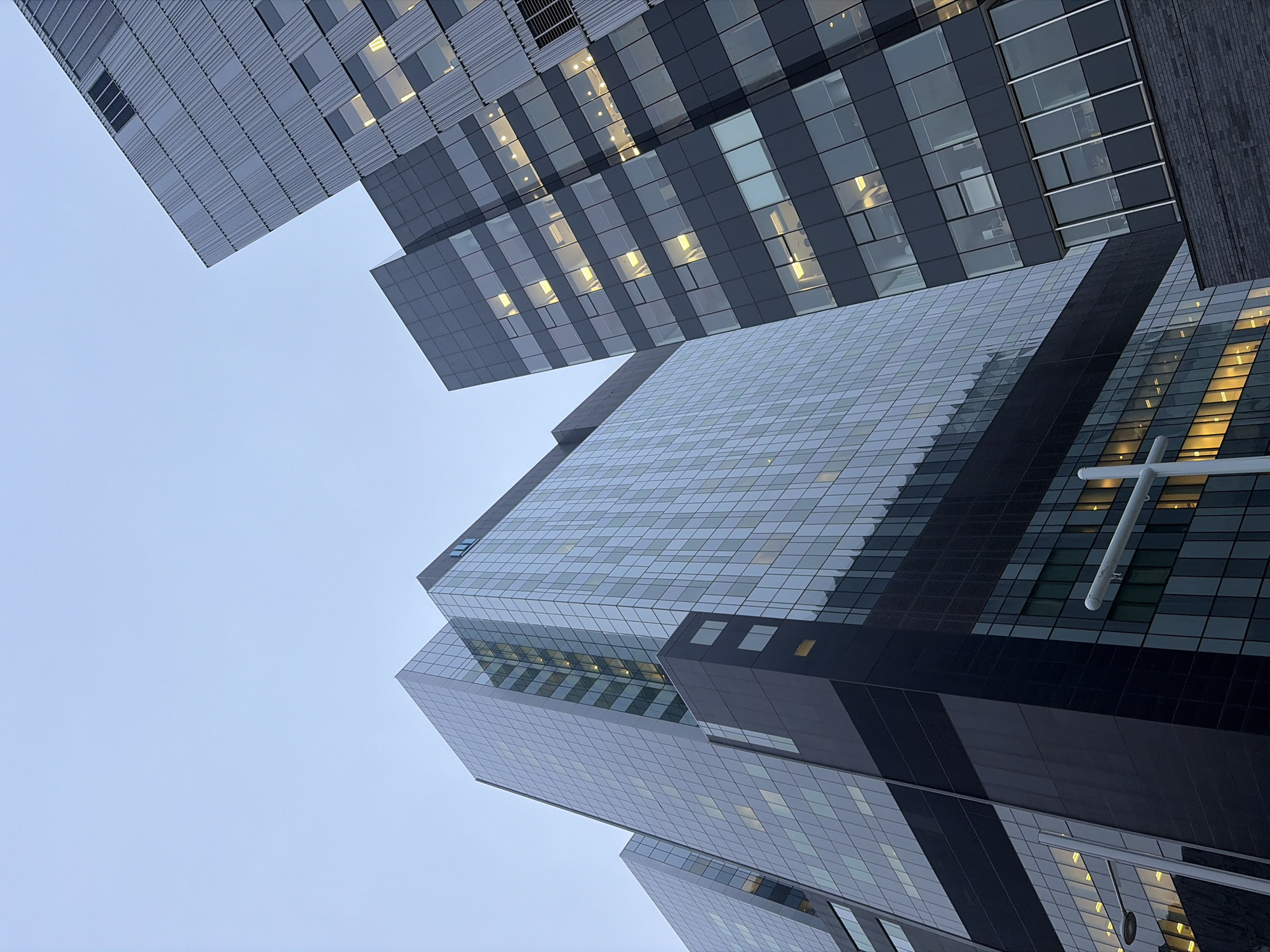 - "The image displays a low-angle perspective of modern high-rise office buildings under an overcast light blue-grey sky" by FM-N0A8i2, licensed under CC BY 4.0