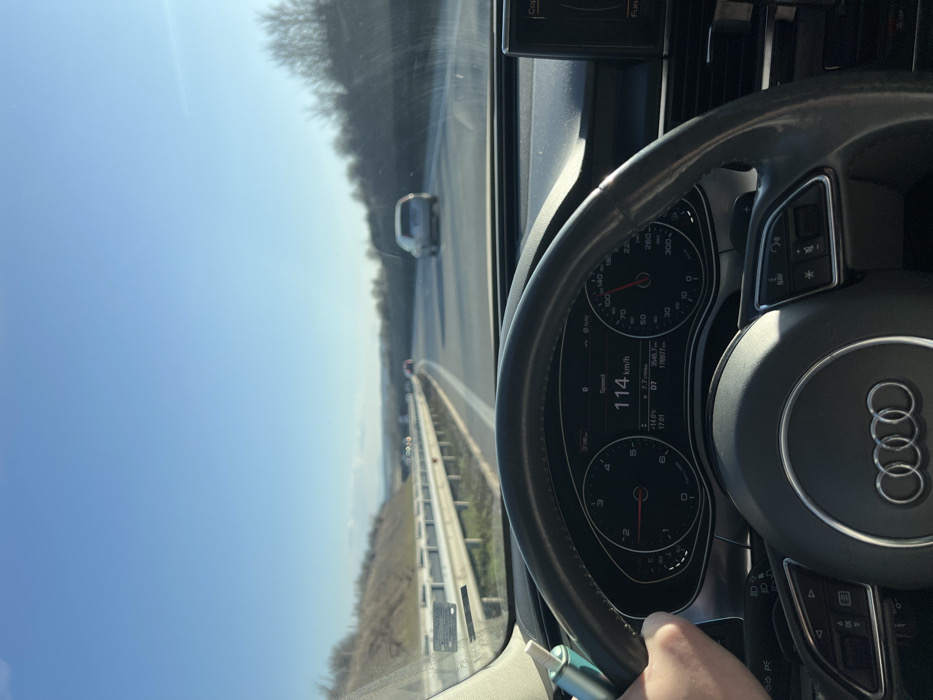 - "The scene depicts the interior of an Audi vehicle driving on a multi-lane highway near the city of Dyakovo, Bulgaria, under clear blue skies during daytime" by FM-V46qG3, licensed under CC BY 4.0