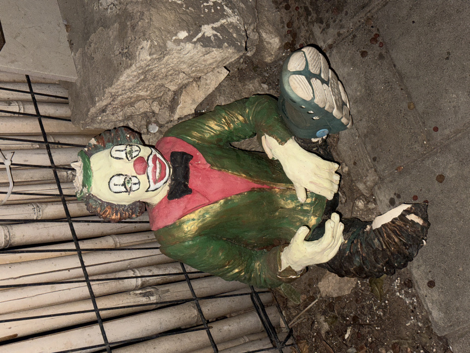 - "A clown statue sits in a cluttered outdoor space" by FM-gheTs1, licensed under CC BY 4.0
