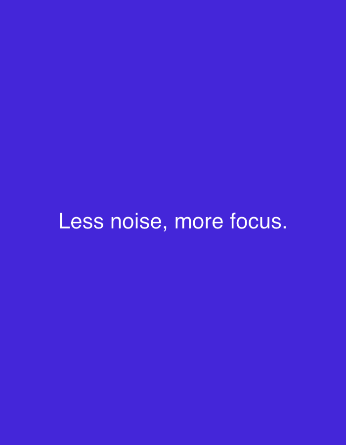This image displays a solid purple-blue background, presented as a graphic or digital display located in Zango-ndaji, Nigeria. White sans-serif text, reading "Less noise, more focus," is horizontally centered in the lower-middle section of the frame. No other subjects, objects, people, or environmental features are depicted.