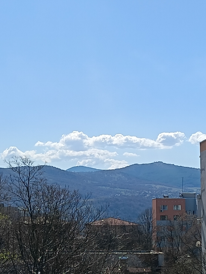 - "The image presents an outdoor, high-angle view overlooking a section of Blagoevgrad, Bulgaria, under a clear blue sky dotted with a band of white cumulus clouds horizontally aligned across the mid-distance" by FM-4AUD52, licensed under CC BY 4.0