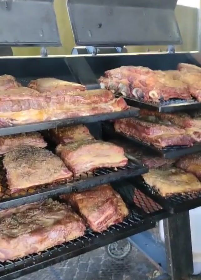 - "large smoker containing multiple racks of beef ribs" by FM-xkd7v1, licensed under CC BY 4.0