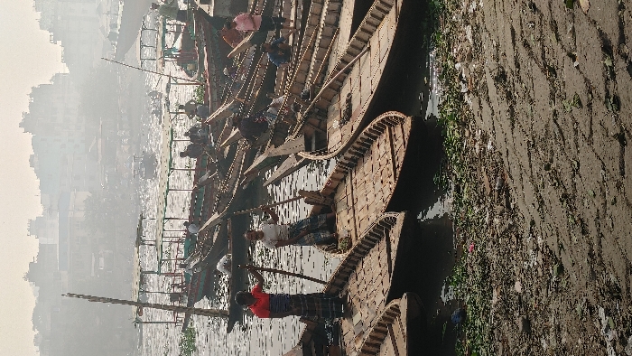 - "A scene of numerous wooden boats lined up, possibly docked at a riverbank or canal" by FM-PRZ6s1, licensed under CC BY 4.0
