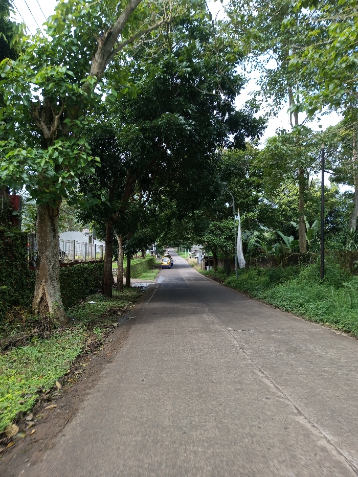 This image presents a paved, two-lane road in Ariyalai, Sri Lanka, viewed from a low angle looking down its length