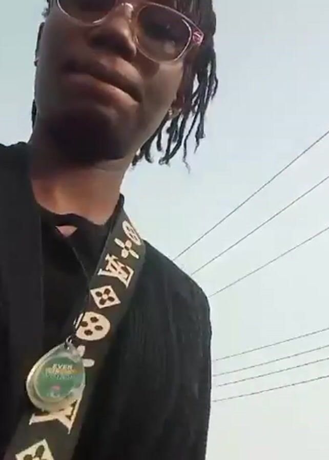 A young woman with dark skin and braided hair is recording a selfie video outdoors
