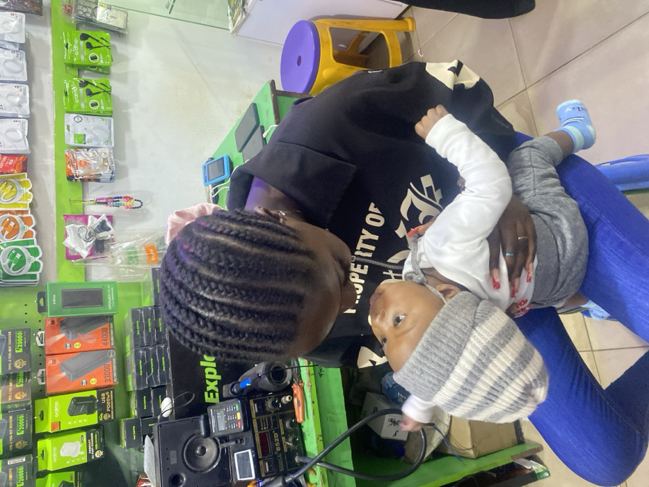 The image portrays an interior view of an electronics repair and accessories shop located in Kaduna South, Nigeria