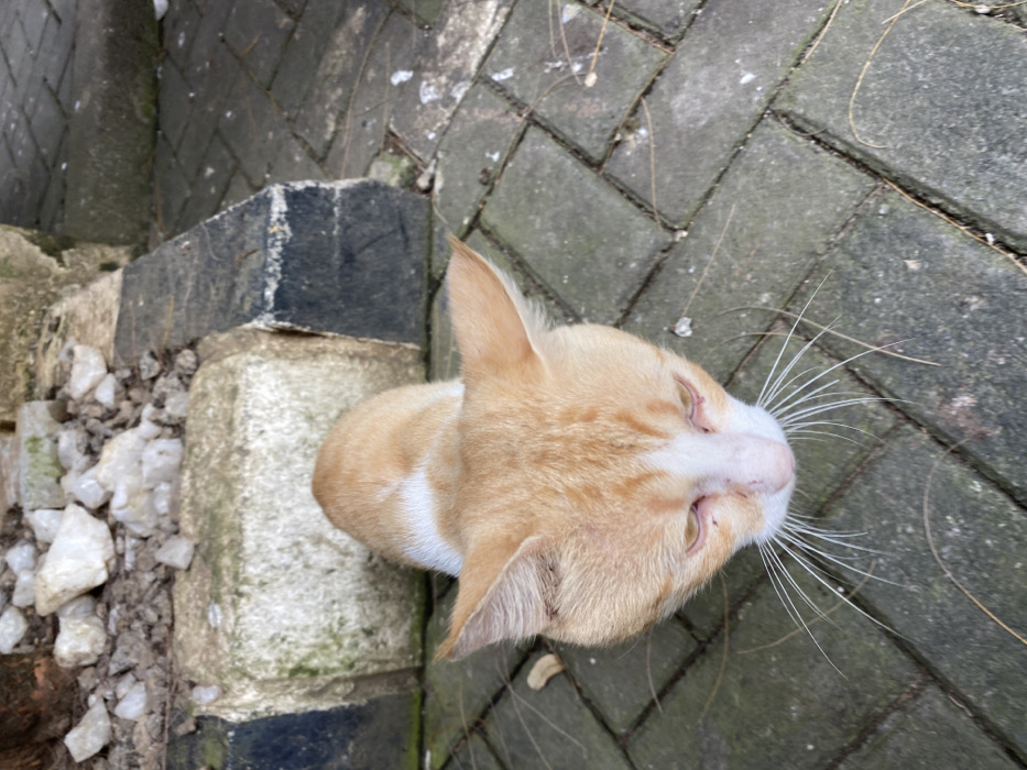 - "A ginger and white domestic cat is positioned on grey interlocking paver blocks in Guzape, Nigeria" by FM-ECVX42, licensed under CC BY 4.0