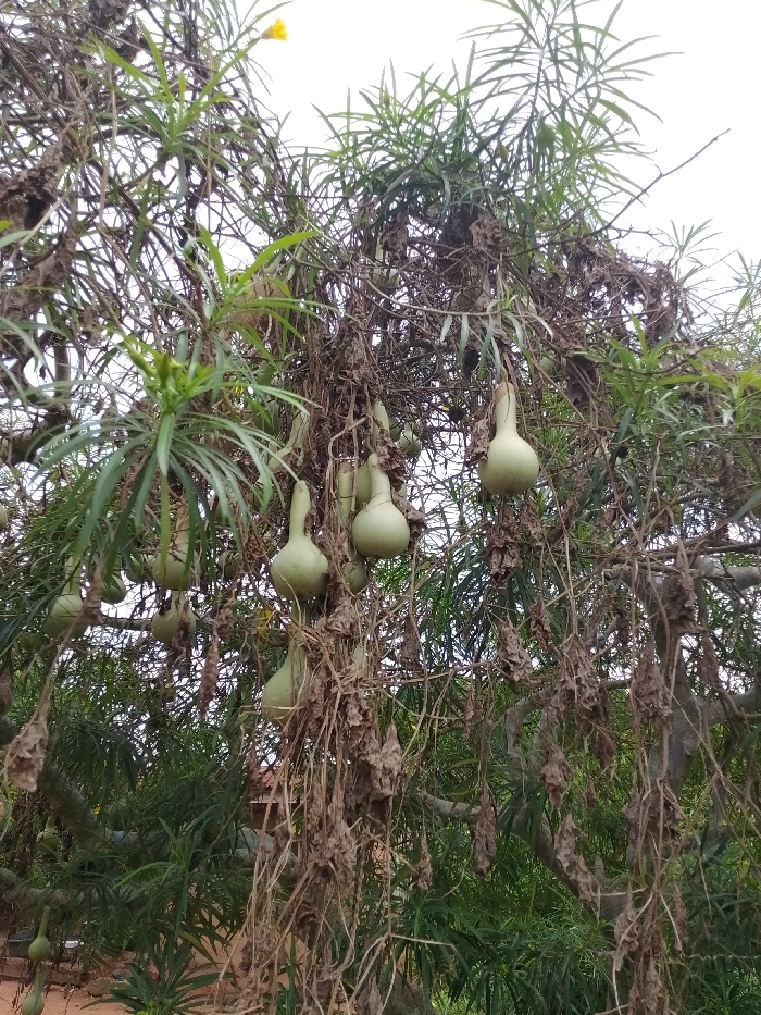 - "This image captures a dense botanical scene in Ugwolawo, Nigeria, dominated by a tree or large vine heavily laden with numerous pale green, tear-drop shaped gourds" by FM-TKrYD3, licensed under CC BY 4.0