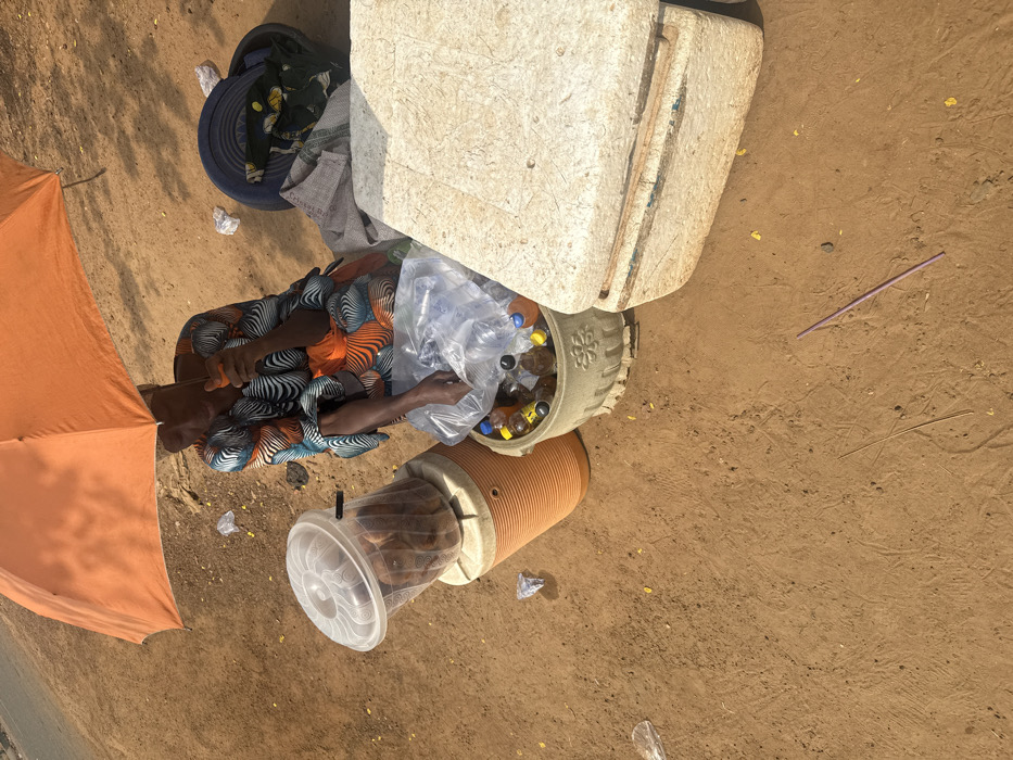 This image depicts an outdoor informal vending scene in Unknown, Nigeria