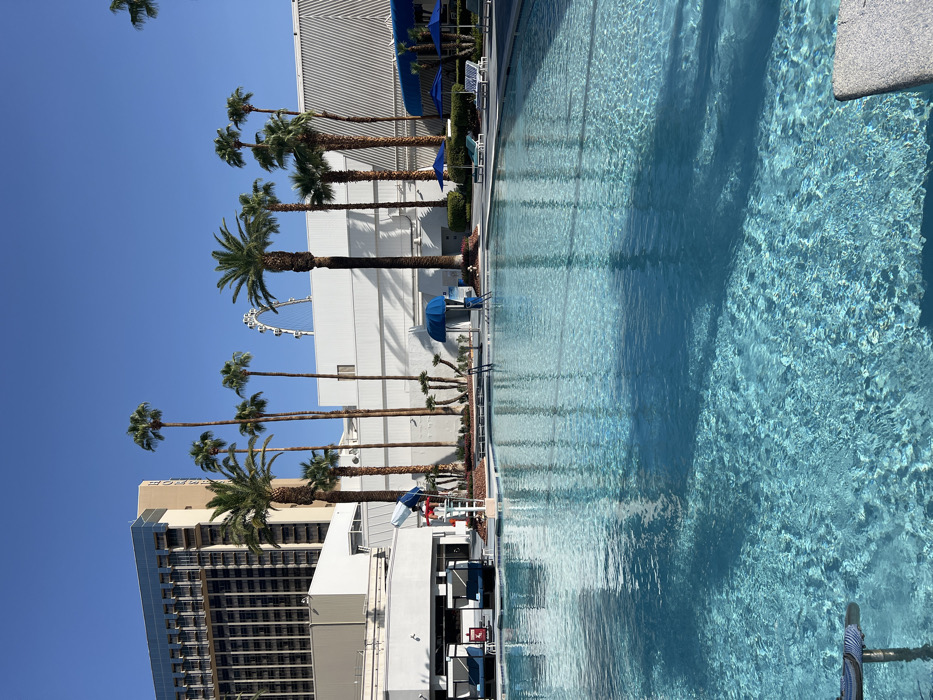 - "This image captures an outdoor swimming pool area within a resort setting in Paradise, Nevada, identifiable by the prominent High Roller Ferris wheel in the background and a multi-story hotel building resembling the Horseshoe Las Vegas" by FM-PcEqo1, licensed under CC BY 4.0