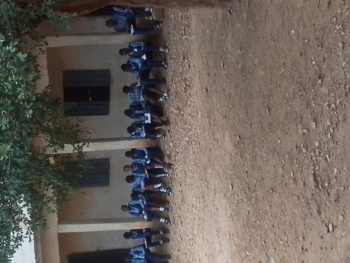 - "Approximately fifteen individuals, uniformly attired in blue and white checkered garments, are seated in a linear arrangement against the exterior wall of a light-colored building in Tabu, Nigeria" by FM-B3c4R2, licensed under CC BY 4.0