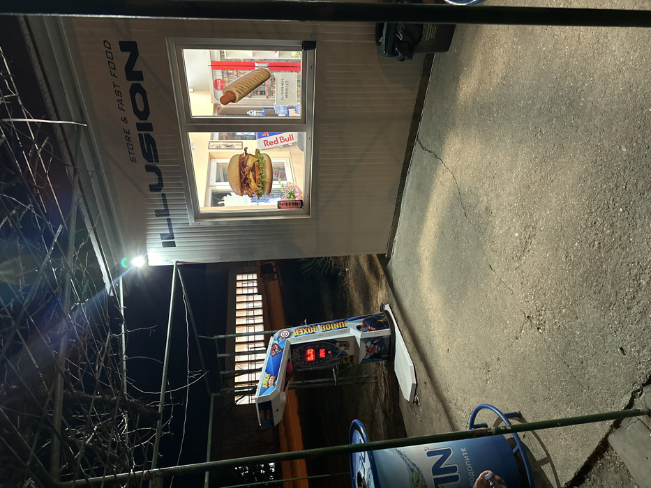 - "This nighttime image captures a small, illuminated outdoor fast-food and store establishment, along with an adjacent arcade game, in Stara Zagora, Bulgaria" by FM-K8jJK2, licensed under CC BY 4.0
