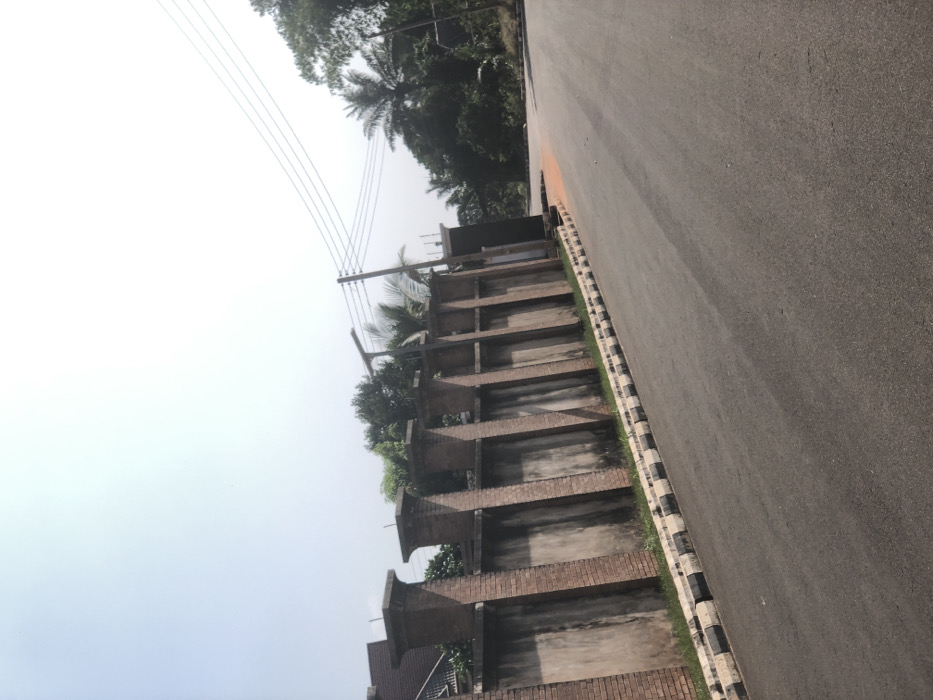 This image depicts a paved asphalt road in Nsukka, Nigeria, under a clear, light blue sky
