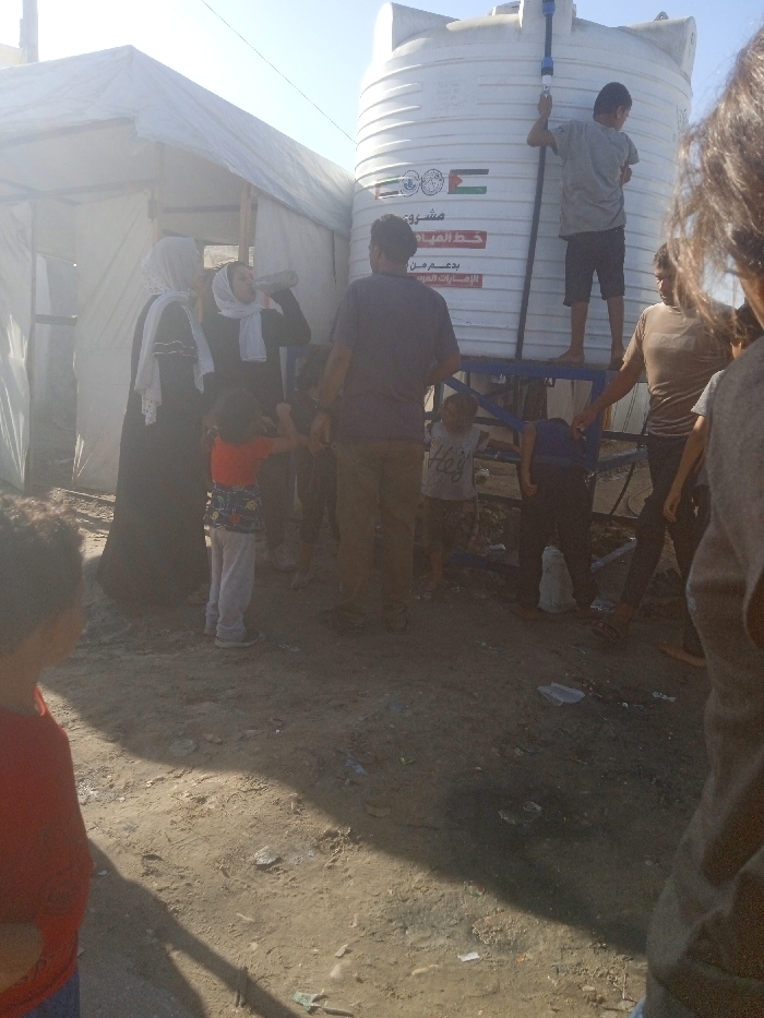 - "The image captures an outdoor scene in Al-Mawasi, Palestinian Territories, depicting a group of individuals gathered around a large white water storage tank" by FM-cV3b62, licensed under CC BY 4.0