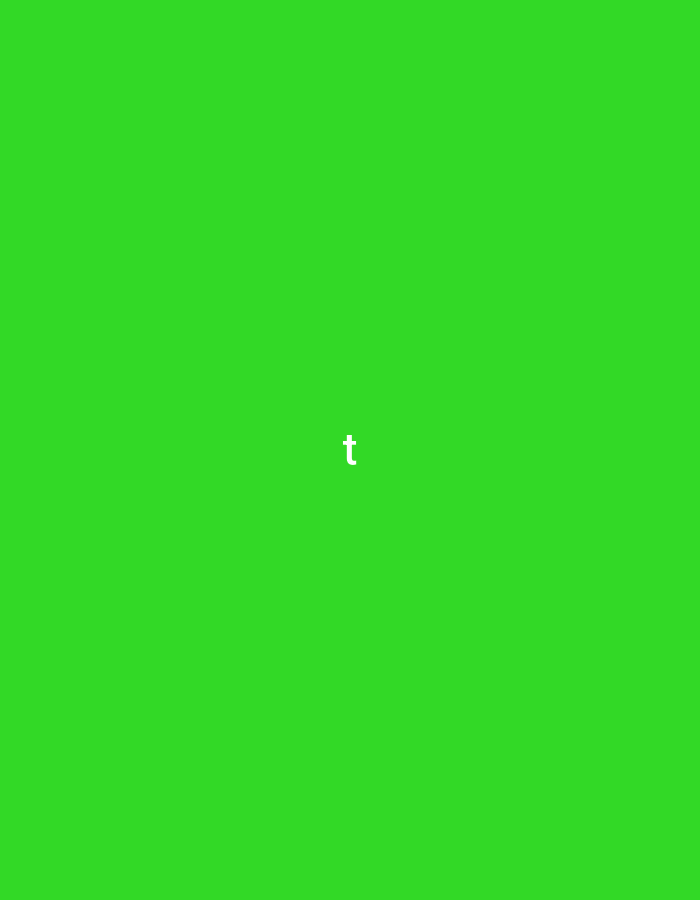 The image displays a uniform, solid green background. A single white lowercase letter "t" is centrally positioned within the frame. There are no identifiable people, subjects, objects, actions, or interactions depicted. The environment consists solely of this solid green field. The image does not contain any visual information pertaining to the city of Khiva, Uzbekistan, or any discernible geographic location.