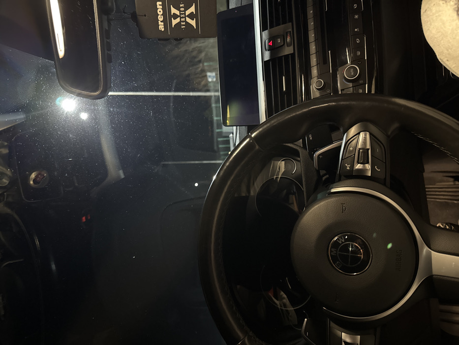 A nighttime view from the driver's seat of a BMW vehicle in Tvarditsa, Bulgaria