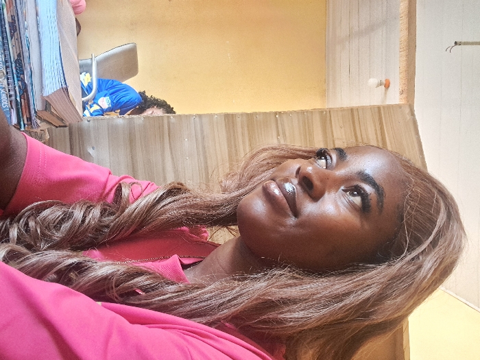 An indoor scene in Makurdi, Nigeria, depicts a young individual with medium-brown skin and long, wavy light brown hair, positioned in the foreground