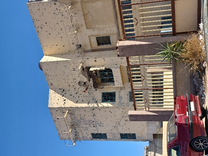 - "This image depicts a heavily damaged multi-story building in As-Sabina, Syria, viewed from the street level under a clear blue sky" by FM-hmmxi2, licensed under CC BY 4.0