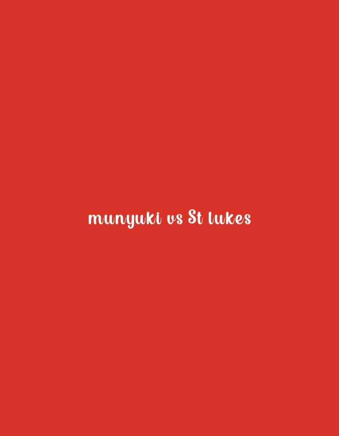 A red background fills the frame, centered with the phrase "munyuki vs St lukes" in a playful, cursive white font. The text is straightforward, indicating a competition or match between two entities, Munyuki and St Lukes.
